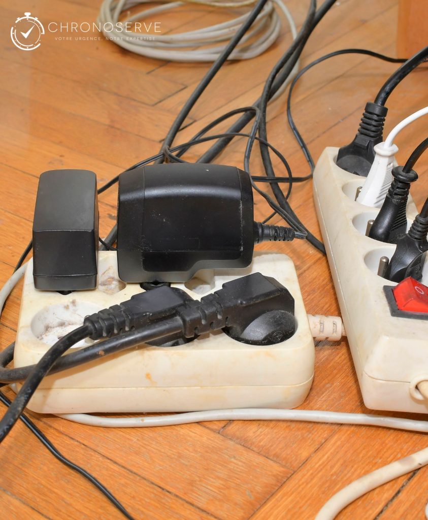 Multiples appareils sur une seule prise : Brancher plusieurs appareils électroniques sur une seule prise électrique peut dépasser la capacité nominale de cette dernière, entraînant des courts-circuits ou des défaillances.