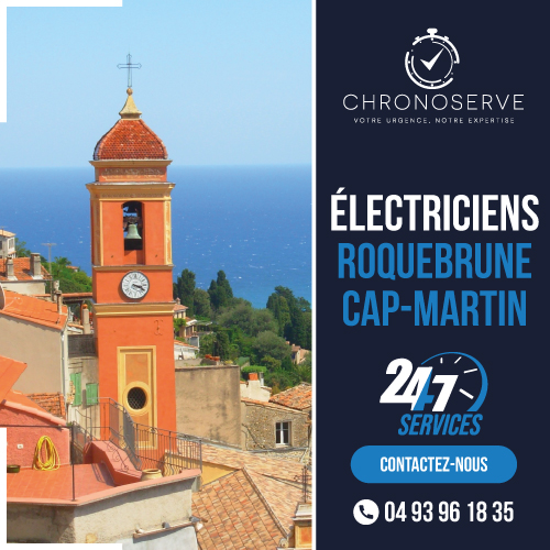 Besoin d'un électricien à Roquebrune-Cap-Martin ? Intervention rapide pour panne de courant, dépannage de tableau électrique et réparation de prises. Service fiable, tarifs clairs et intervention rapide. Appelez ChronoServe Électricien Roquebrune-Cap-Martin au 09 72 51 99 85 pour un dépannage urgent.