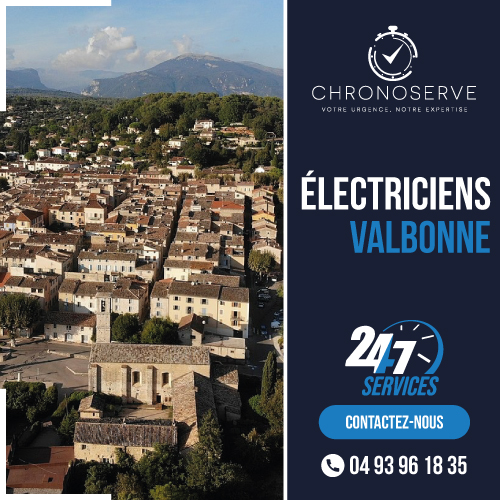 Besoin d'un électricien à Valbonne ? Intervention rapide pour panne de courant, dépannage de tableau électrique et réparation de prises. Service fiable, tarifs clairs et intervention rapide. Appelez ChronoServe Électricien Valbonne au 09 72 51 99 85 pour un dépannage urgent.