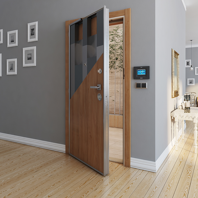 Cette option économique et efficace permet de conserver l’aspect extérieur de votre porte. Nous la renforçons de l’intérieur avec une plaque d’acier, une serrure de sécurité multipoints et des paumelles renforcées.