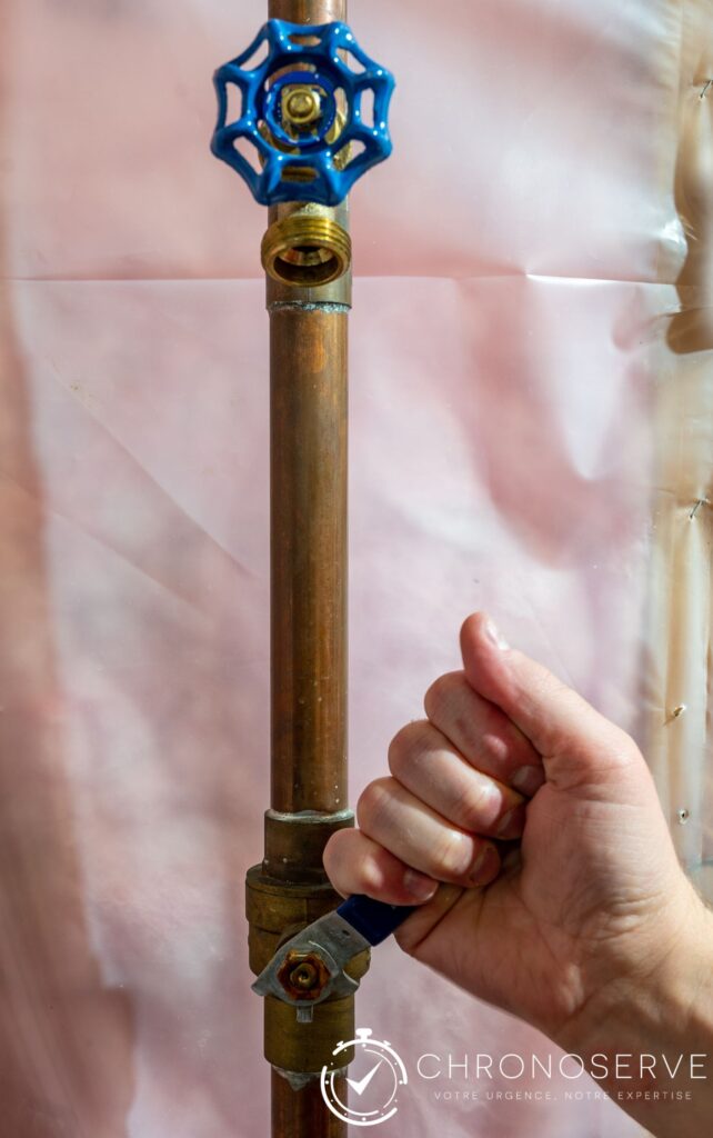 - Réouverture progressive du robinet principal : Rouvrez lentement le robinet d’arrêt principal de votre habitation pour rétablir progressivement l’alimentation en eau. Procédez par étapes pour éviter les coups de bélier.