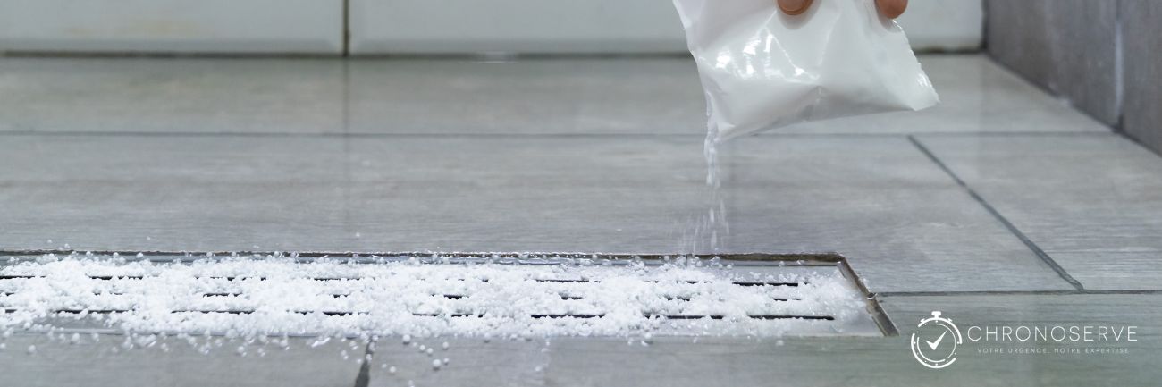 - Étape 1 : Versez une tasse de bicarbonate de soude dans la canalisation obstruée.