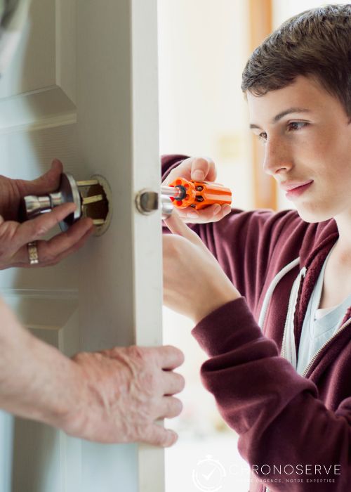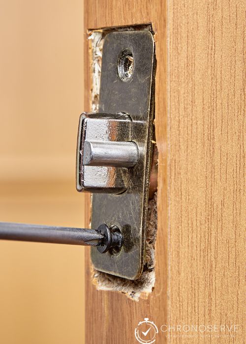 - Étape 4 : Fixation et remontage : La nouvelle serrure est fixée solidement avec des vis. Les éléments de la porte (poignées, etc.) sont réinstallés et la fonctionnalité est testée.
