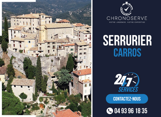 Ne restez pas bloqué dehors ! ChronoServe Serrurier Carros intervient 24H/24 et 7J/7 en moins de 30 minutes pour vous dépanner.