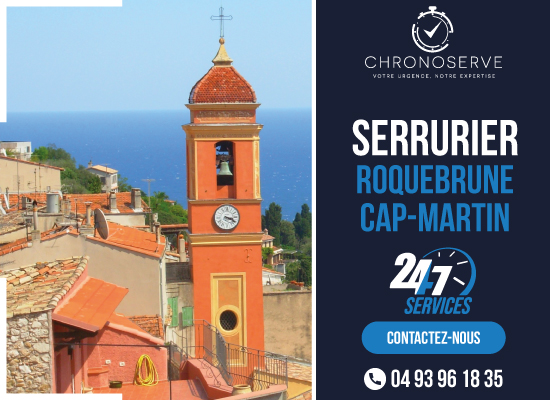 Ne restez pas bloqué dehors ! ChronoServe Serrurier Roquebrune-Cap-Martin intervient 24H/24 et 7J/7 en moins de 30 minutes pour vous dépanner.