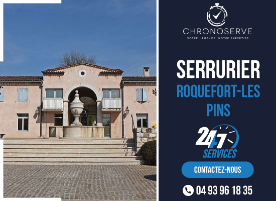 Ne restez pas bloqué dehors ! ChronoServe Serrurier Roquefort-les-Pins intervient 24H/24 et 7J/7 en moins de 30 minutes pour vous dépanner.