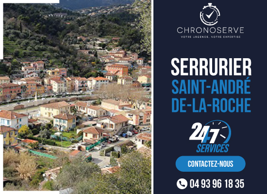Ne restez pas bloqué dehors ! ChronoServe Serrurier Saint-André-de-la-Roche intervient 24H/24 et 7J/7 en moins de 30 minutes pour vous dépanner.